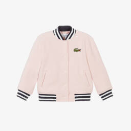 Pale pink cotton jacket for boys by Lacoste, made in soft, mid-weight sweatshirt jersey. An ideal layering piece, it has ribbed trims with contrasting pink and white stripes for a sporty look. The signature embroidered crocodile logo badge is on the chest, giving instant brand identity, and there are useful side seam pockets.