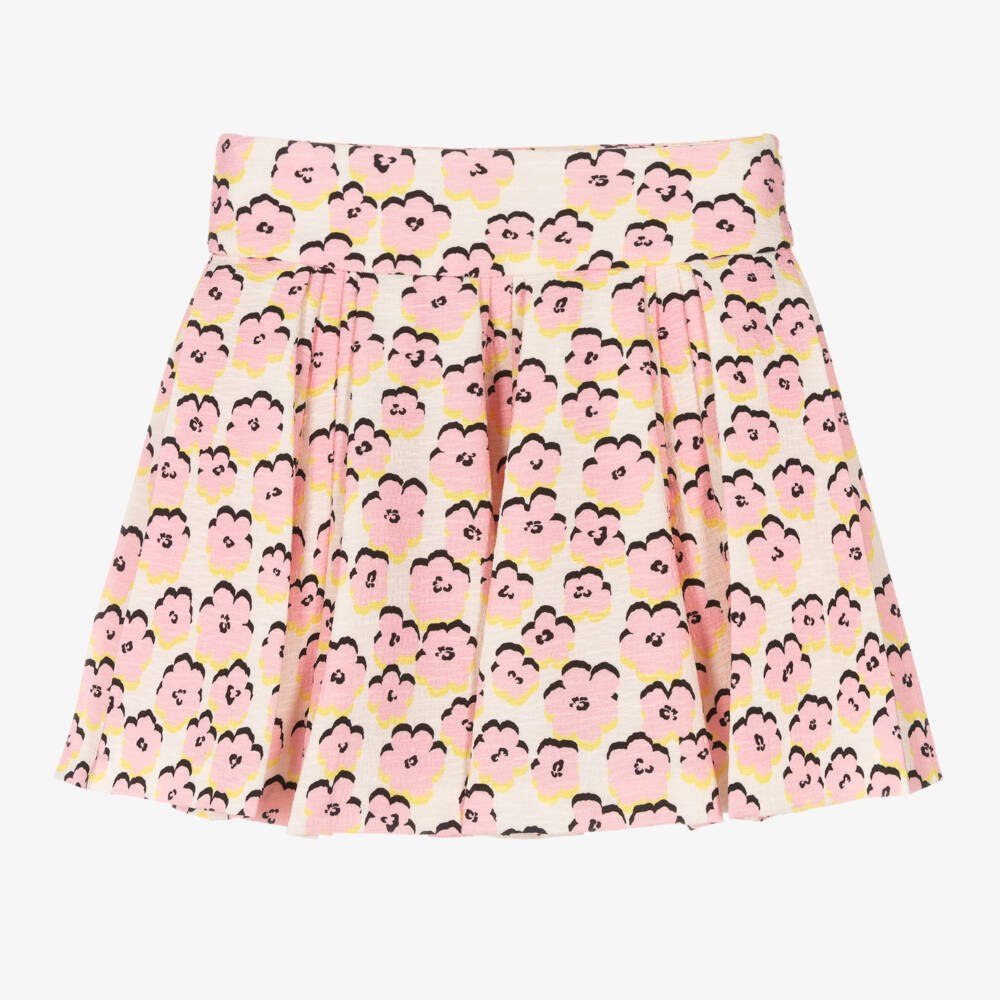 Inspired by the adult collection, a lovely ivory skirt for girls by luxury French brand Lanvin. Made in a lightweight textured material, it has a pretty pink, yellow and black daisy pattern, interspersed with black logo prints. This stylish pleated skirt has a lightweight viscose lining and layers of soft tulle for extra volume. It has a concealed side zip fastening.