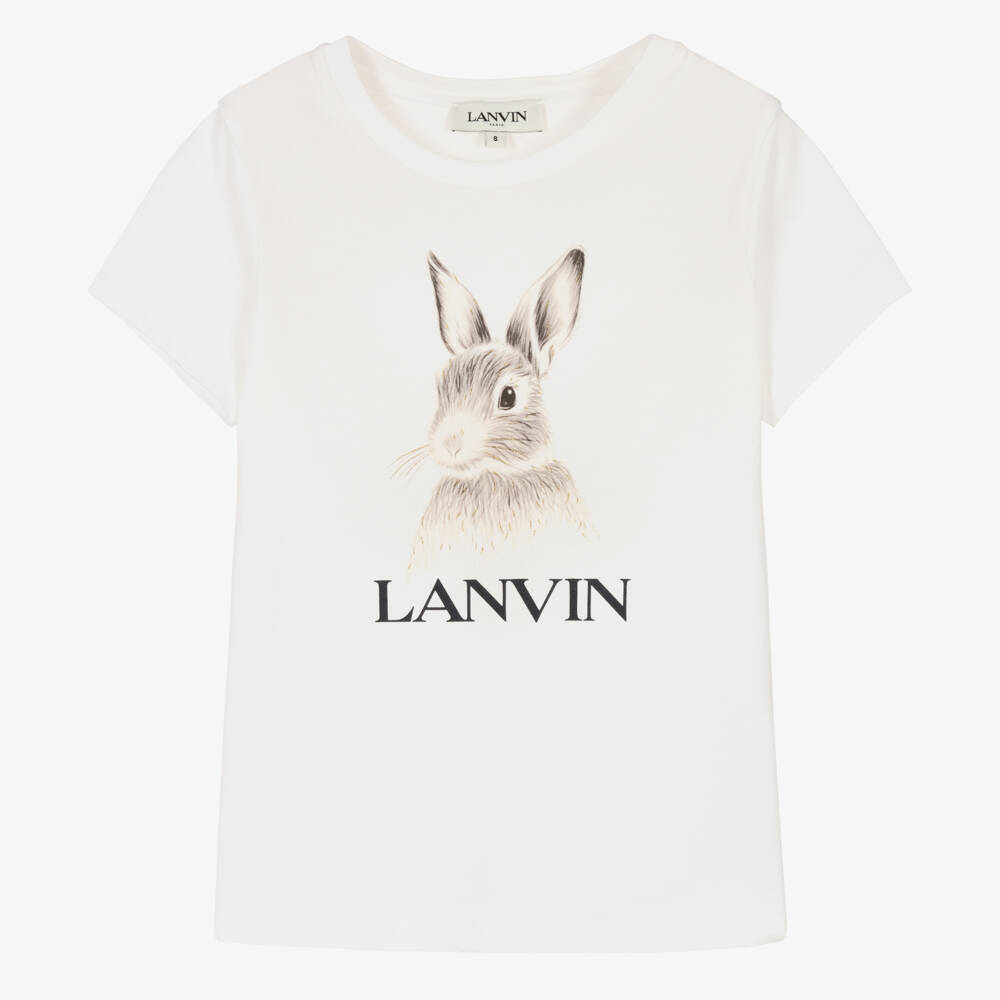 A lovely ivory organic cotton T-shirt for teen girls by French brand Lanvin. Inspired by the adult collection, it has a glittery gold rabbit above a bold black logo, adding charm to this casual, comfortable jersey tee.