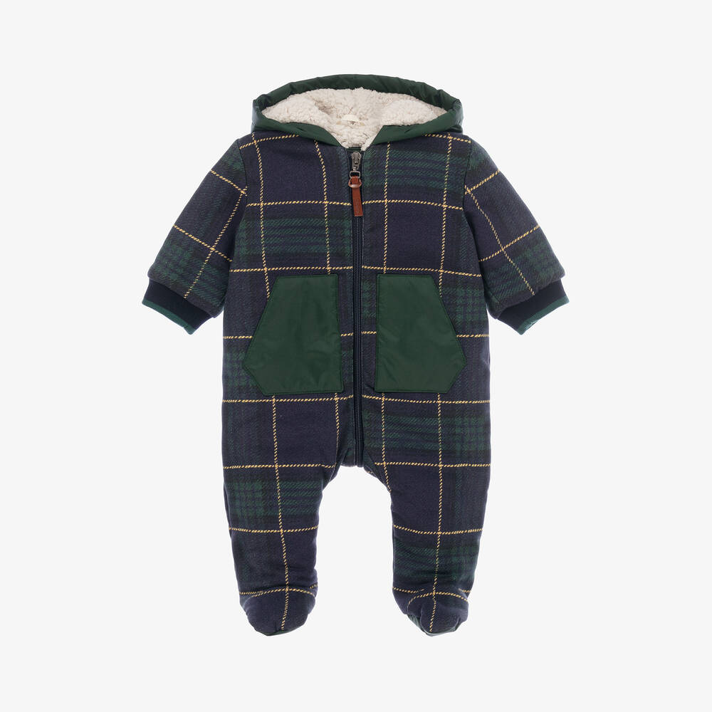 Baby Boys Blue Check Cotton Pramsuit
