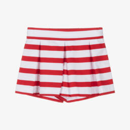 Boys white shorts by Lapin House, made in cotton with a hint of stretch. These Bermuda-style shorts have pocket styling and turned-up cuffs. They have an adjustable waistband and fasten with a button and zip. The shorts come with a detachable woven belt for cool accessorizing.