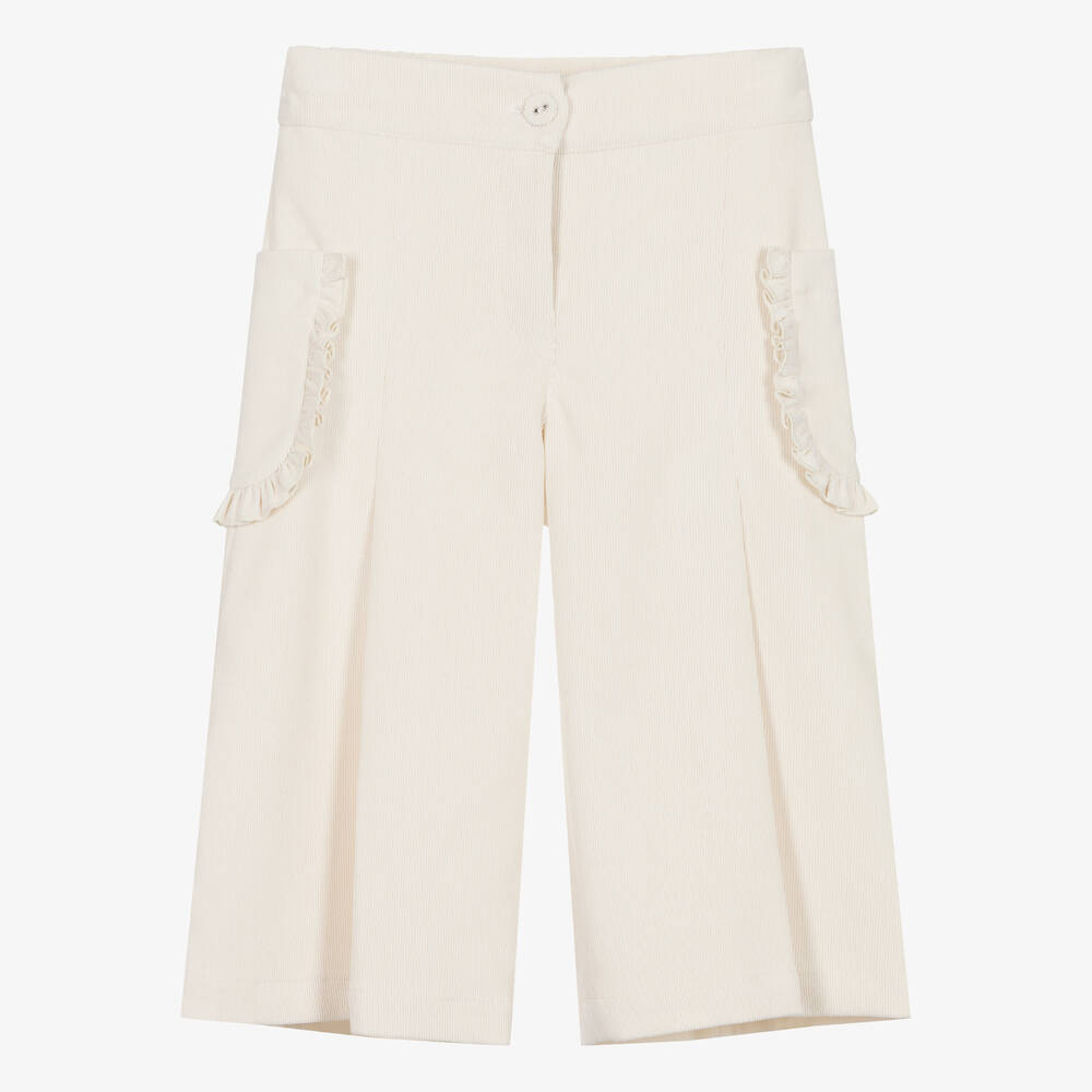 Girls Ivory Corduroy Pocket Culottes