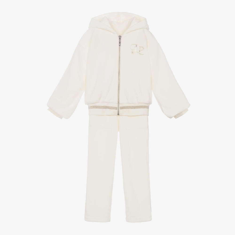 Girls Ivory Cotton Velour Tracksuit