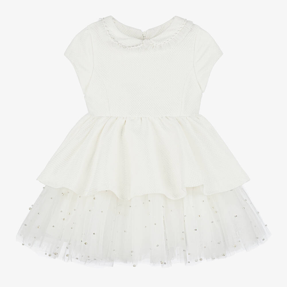 Girls Ivory Jacquard & Tulle Dress