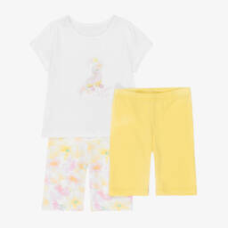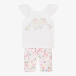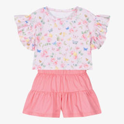 Girls Ivory & Pink Logo Floral Top & Shorts Set