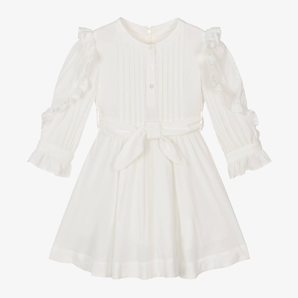 Girls Ivory Ruffle Shirt Dress