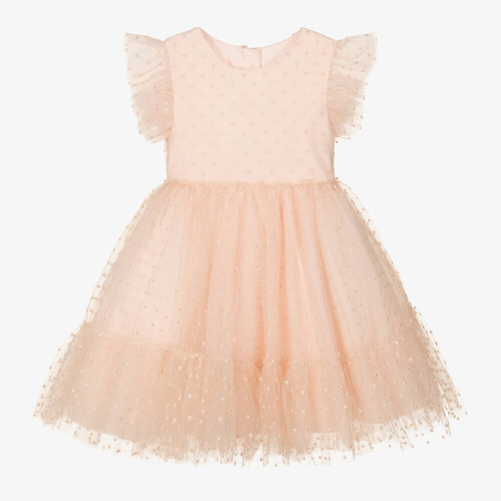 Girls Pale Pink Tulle Dots Dress