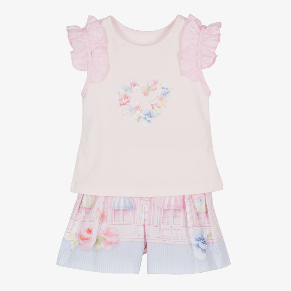 Girls Pink Cotton Shorts Set