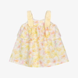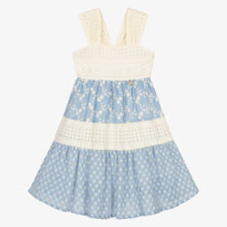This red dress for girls by Lapin House combines comfort with charming style. Made in a stretchy viscose-blend jersey, it features a delightful bunny motif on the front, with logo tape trims and intricate, lacy knit panels on the sides. There are sweet puffed shoulders and a single button fastening on the back. Ideal for cooler days, this long-sleeved dress is both cosy and stylish.