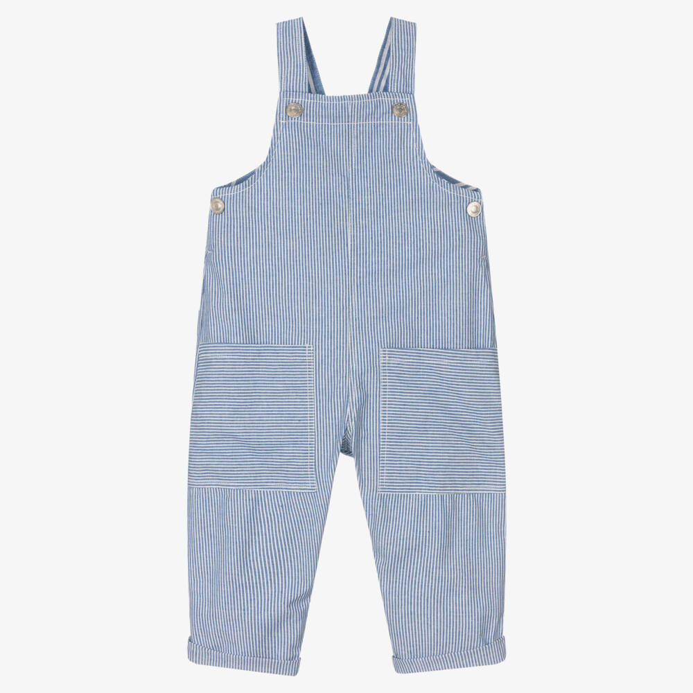 Blue & White Striped Cotton Dungarees
