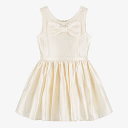 A beautiful dress for girls by Le Chic, covered with dazzling ivory and gold sequins for an eye-catching shimmer. Ideal for a special occasion, this lovely design has a sleeveless silhouette and smooth satin trims around the neck and waist. The silky lining has a tulle trim to give the skirt more of a flared shape at the bottom.