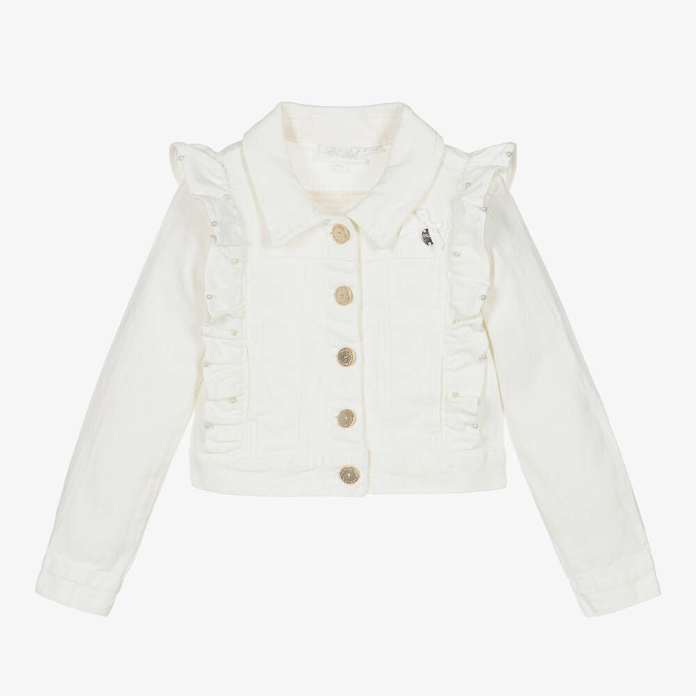 Girls Ivory Pearl Denim Jacket