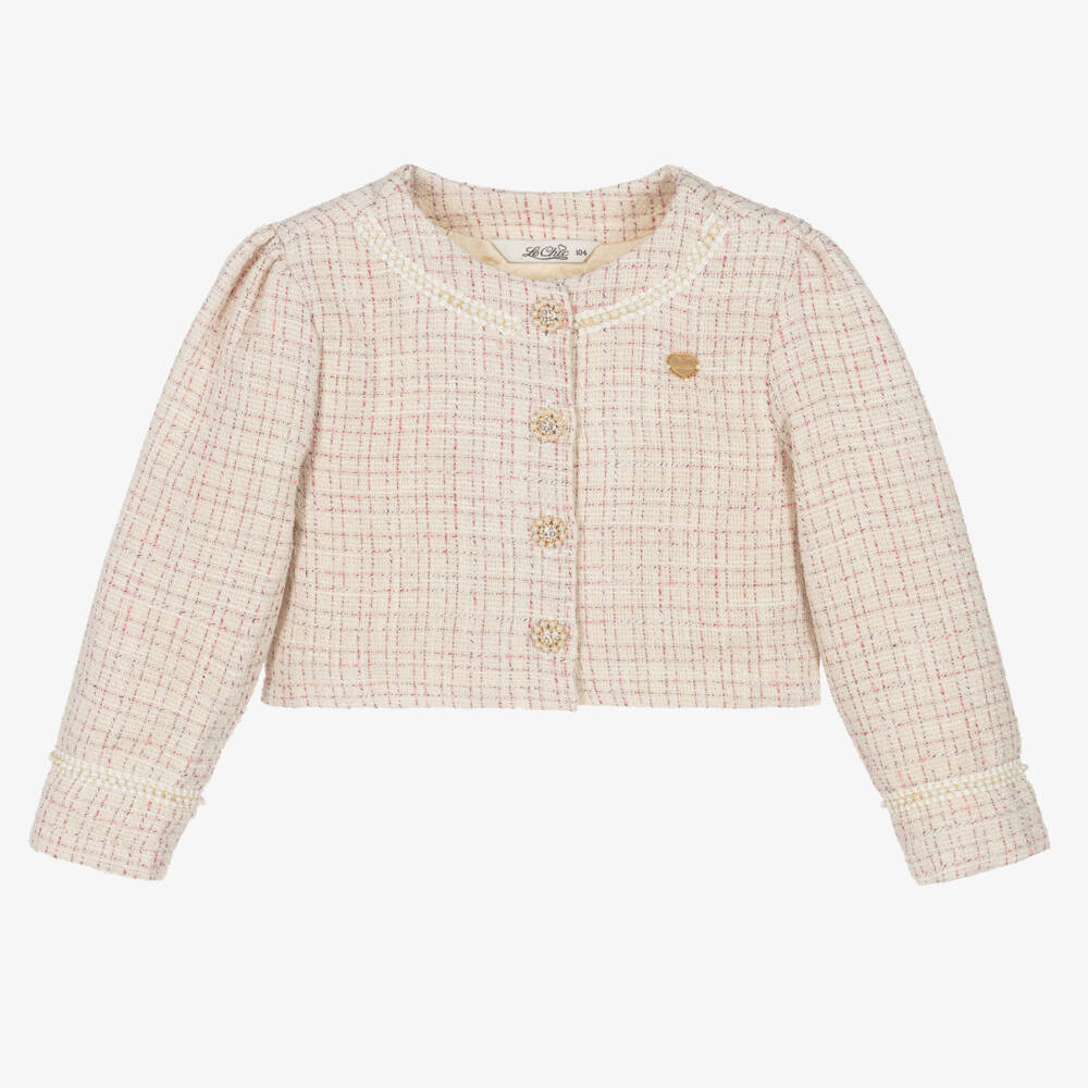 Girls Ivory & Pink Tweed Jacket