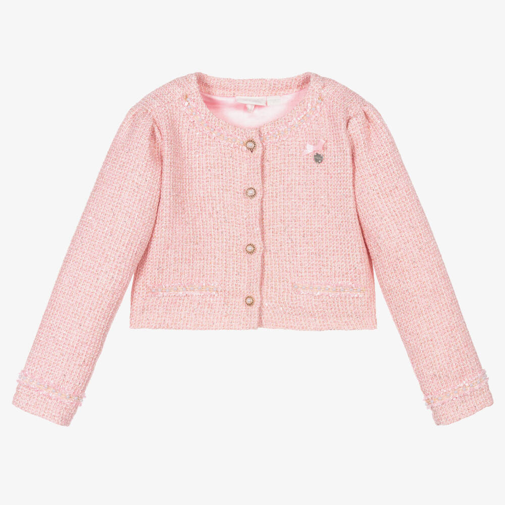 Girls Pink Sequin Tweed Jacket