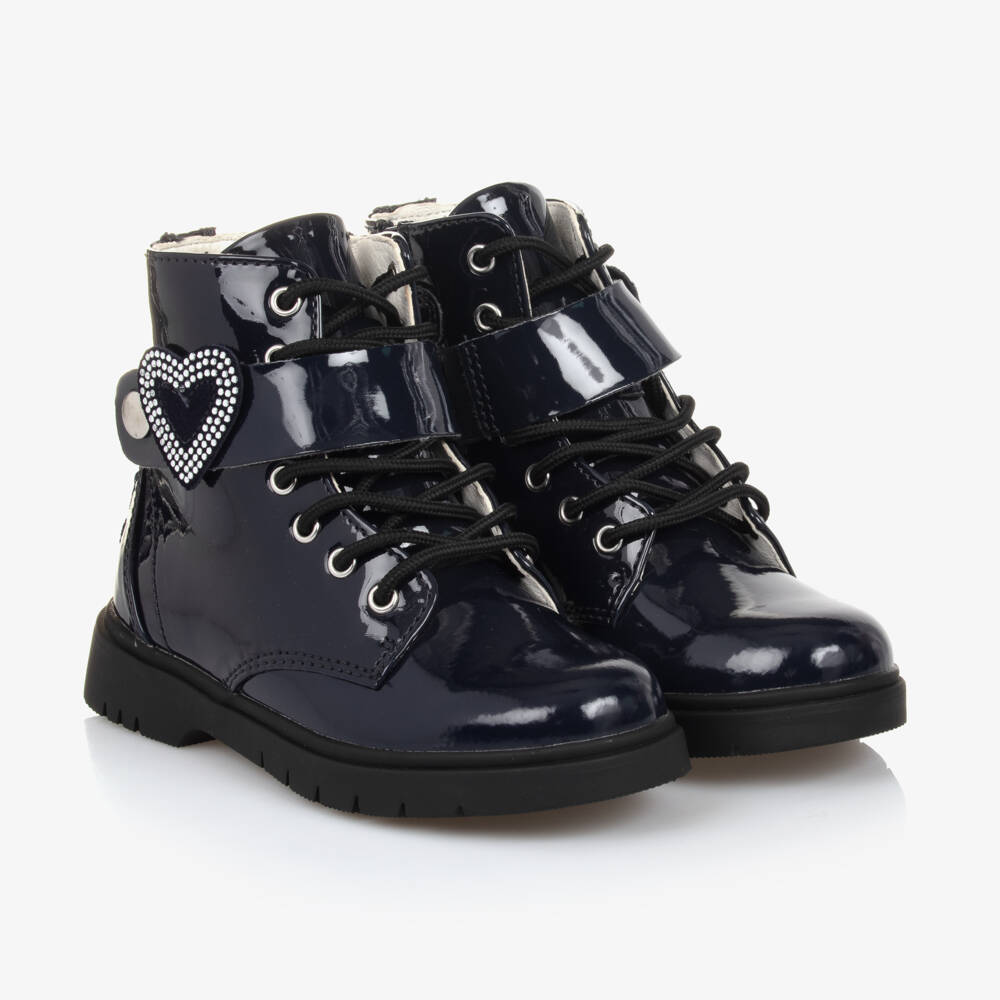 Girls Navy Blue Faux Patent Leather Boots