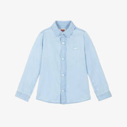 Brown, black and white checked shirt for boys by Levi's, made from soft cotton flannel with a subtle herringbone weave. This classic, casual style has a button-down front and a single chest pocket adorned with the brand's signature Red Tab.