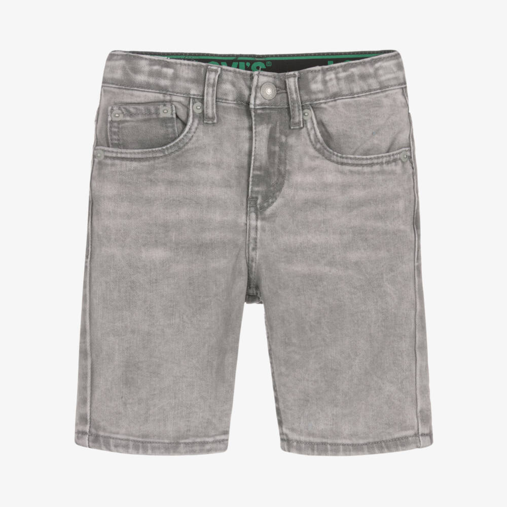 Classic five-pocket, grey shorts for boys by Levi's, with a slim fit from the hip through to the thigh. Soft and stretchy, they are made in recycled Repreve denim with TruTemp 365 technology for temperature regulation. There is a hook and zip fastening on the front, along with an adjustable waistband for a good fit. Detailed with contrast stitching and copper logo-embossed studs, these shorts feature the iconic 2 Horse logo patch and Red Tab on the back for that signature designer finish.