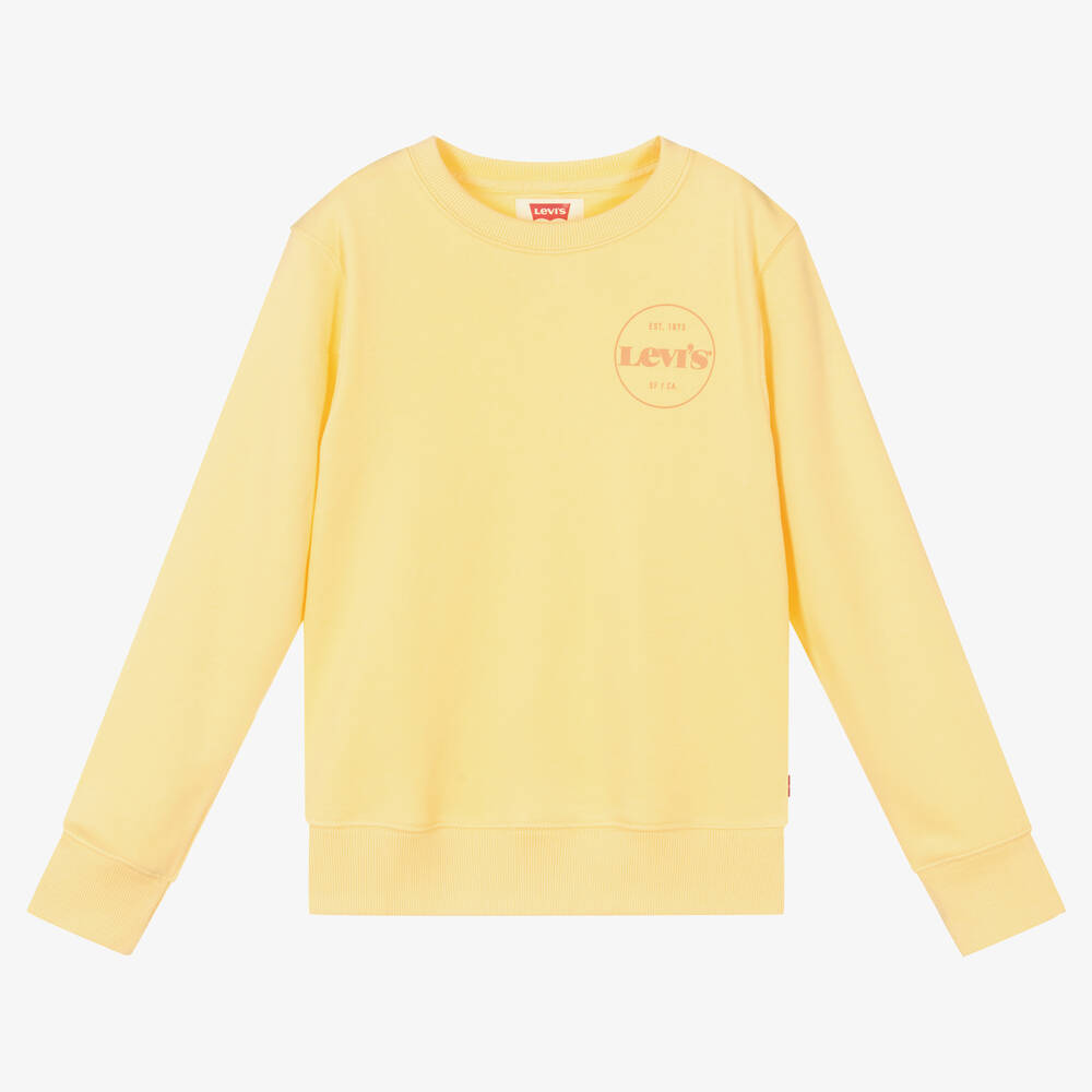 Yellow sweatshirt for boys from Levi's, with an orange logo print on the chest. Made in soft and lightweight cotton-blend sweatshirt jersey, it has ribbed trims and the signature Red Tab logo on the side seam.