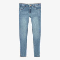 Girls blue 710 jeans by Levi's, made in soft denim with Levi's Flex technology for comfort and stretch. With contrast topstitching, these super skinny jeans have classic five pocket detailing and fasten with a hook and zip fastening on the front. For a branded touch, they have the designer's iconic Red Tab on one back pocket and the 2-Horse jacron patch on the back of the waist.