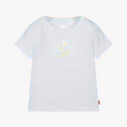 Casual pale blue T-shirt for girls by Levi's, made in soft cotton blend jersey. Cool and comfortable, it features the brand's signature Batwing logo and pretty daisy embroidery for a cute, summery look. The iconic small Red Tab adds a signature finishing touch.