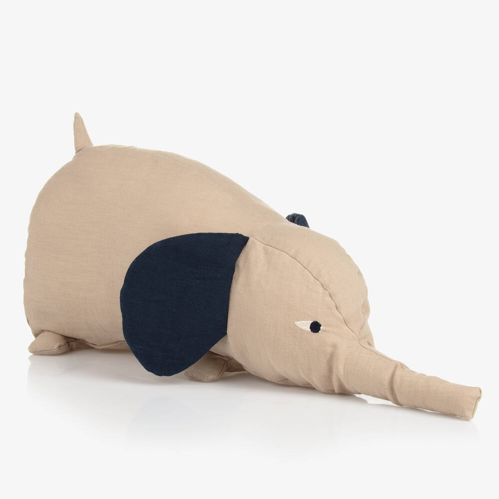 Adorable beige soft toy for little boys and girls by Danish brand Liewood, in the shape of a charming elephant. In muted beige and navy blue shades, this sweet soft toy has an embroidered face and big, floppy ears. It is made using a soft organic cotton and linen blend and has a soft padding, making it great for cuddles.