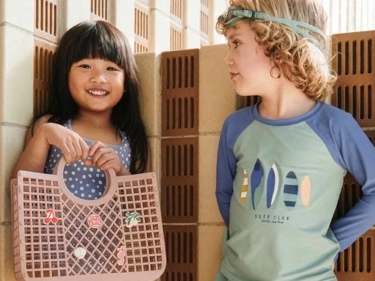 Beige float vest for little boys and girls by Danish brand Liewood, printed with a fun sea creature pattern. Made in smooth and flexible neoprene with a soft brown lining, it has firm yet lightweight padding for optimum mobility and fun time in the water. It fastens with an easy front zip with a velcro tab at the top and there is a woven strap with an adjustable clip buckle fastening to be worn between the legs for a secure fit. Please be aware that this is a swimming aid and not a life-saving device.