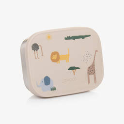 A charming and convenient beige lunchbox for boys and girls by Liewood. The sturdy stainless steel base is divided into three sections for easy use and the flexible soft silicone lid has a multiple vehicle print for a sweet finish.