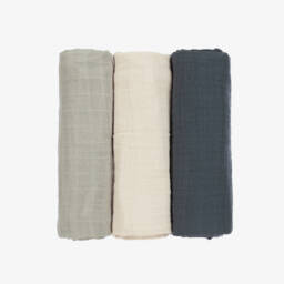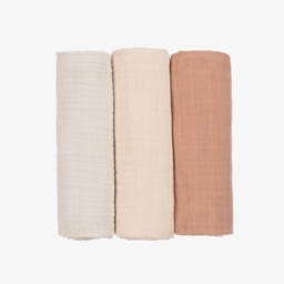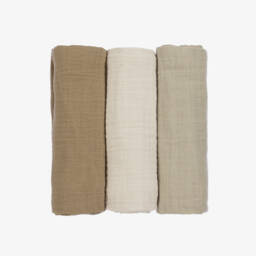 A pack of three organic cotton muslin cloths for baby boys and girls from Liewood. In muted tones of brown and beige, these useful cloths are gentle on skin and are an everyday essential for any new parent.