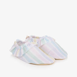 Ivory aqua shoes for boys and girls by Danish brand Liewood, patterned with cute sea creatures. Soft and lightweight, the uppers are made from quick drying neoprene and have pull on straps at the front and back to help with slipping them on and off. The insoles are lightly padded for comfort with arch support. Ideal for days out at the beach, the non-slip, fleixble outer soles are made from textured and durable rubber to protect little feet from pebbles and seashells.