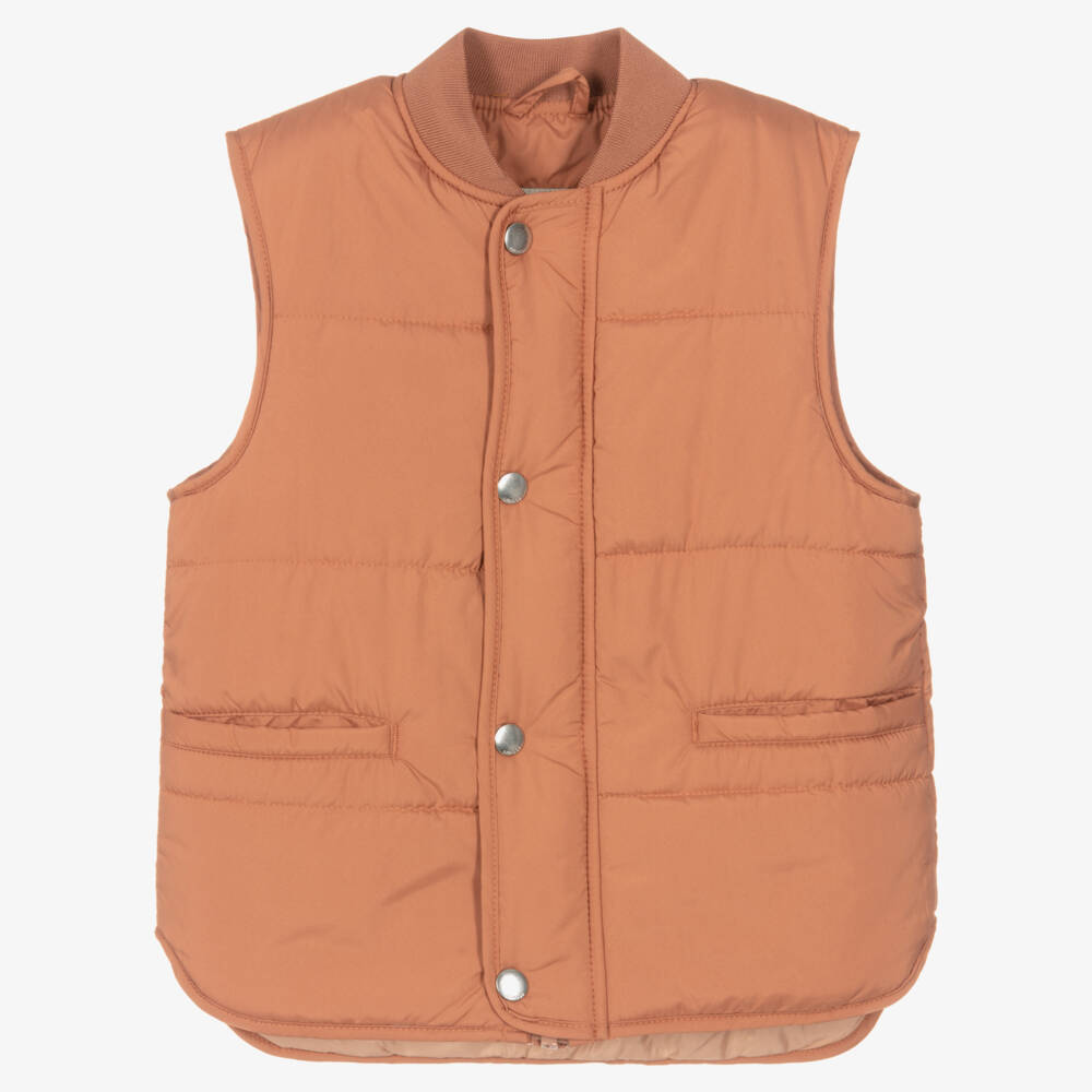 A lovely sunset pink gilet for boys and girls by Danish brand Liewood. Outdoor-ready, this practical jacket is wind resistant with a BIONIC-FINISH® ECO water-repellent finish and secures with a zip under a popper fastening flap. It is made from smooth recycled polyester with a ribbed neckline, handy front pockets and a logo patch on the back. So versatile, it can be worn on its own or as an extra layering piece.