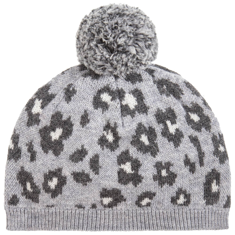 Made in a very soft cotton and wool blend knit with a pom-pom on top, this grey animal print Lili Gaufrette hat will keep little girls heads warm and cosy during the cold months.
