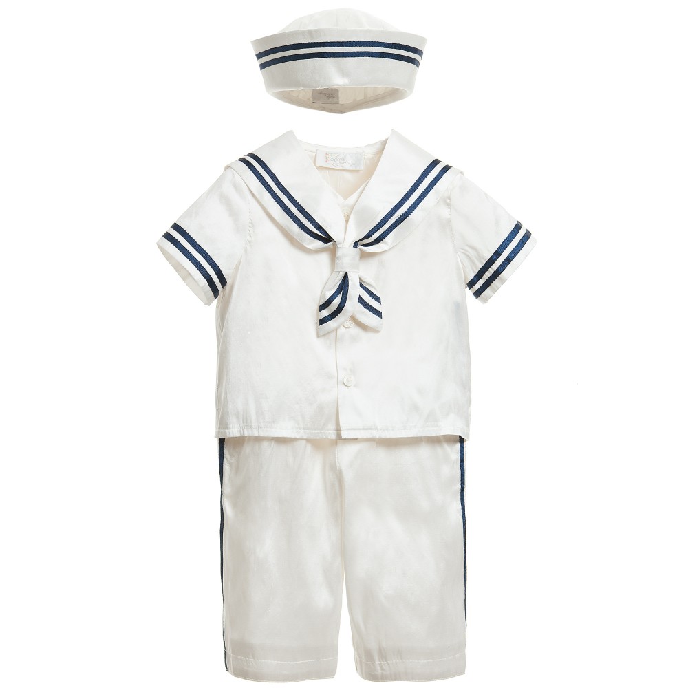 Baby Boys Ivory Silk Sailor Suit & Hat