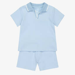 Baby boys cotton shorts set by Little Me, in beige, brown and ivory colourways for a sweet, neutral look. Made in soft slub jersey, one T-shirt has button fastenings while the other one has a cute giraffe motif with bouclé spots for texture. Simply pull on, the shorts have a decorative tie detail.