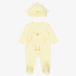 Adorable blue cotton shortie set for baby girls by Little Me, made in soft and comfortable towelling. Patterned with little white daisies for a charming summery look, the shortie is gently shirred around the chest, with poppers between the legs for easy changing. A matching hat with a frilled brim, completes the sweet look.
