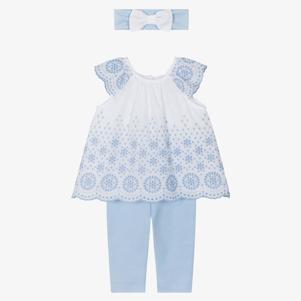 Baby Girls Blue & White Embroidered Leggings Set