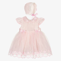 Baby Girls Pink Ribbed Cotton & Tulle Dress Set