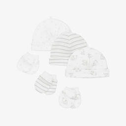 This charming set of two white and grey bibs and a burp cloth, for baby boys and girls is designed by Little Me. Featuring adorable safari animals and gentle stripes, they are made in soft cotton, with absorbent terry towelling on the reverse. Ideal for feeding and burping, the cloth can be laid over your shoulder and the bibs have easy-to-use velcro fastenings.