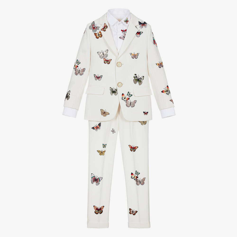 Boys Ivory Embroidered Butterfly Suit