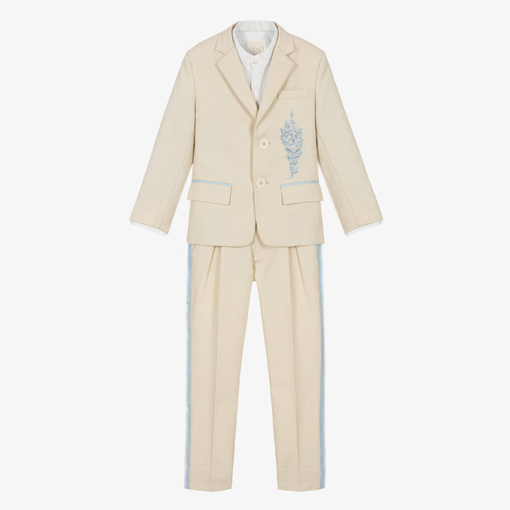 Boys Ivory Embroidered Floral Suit