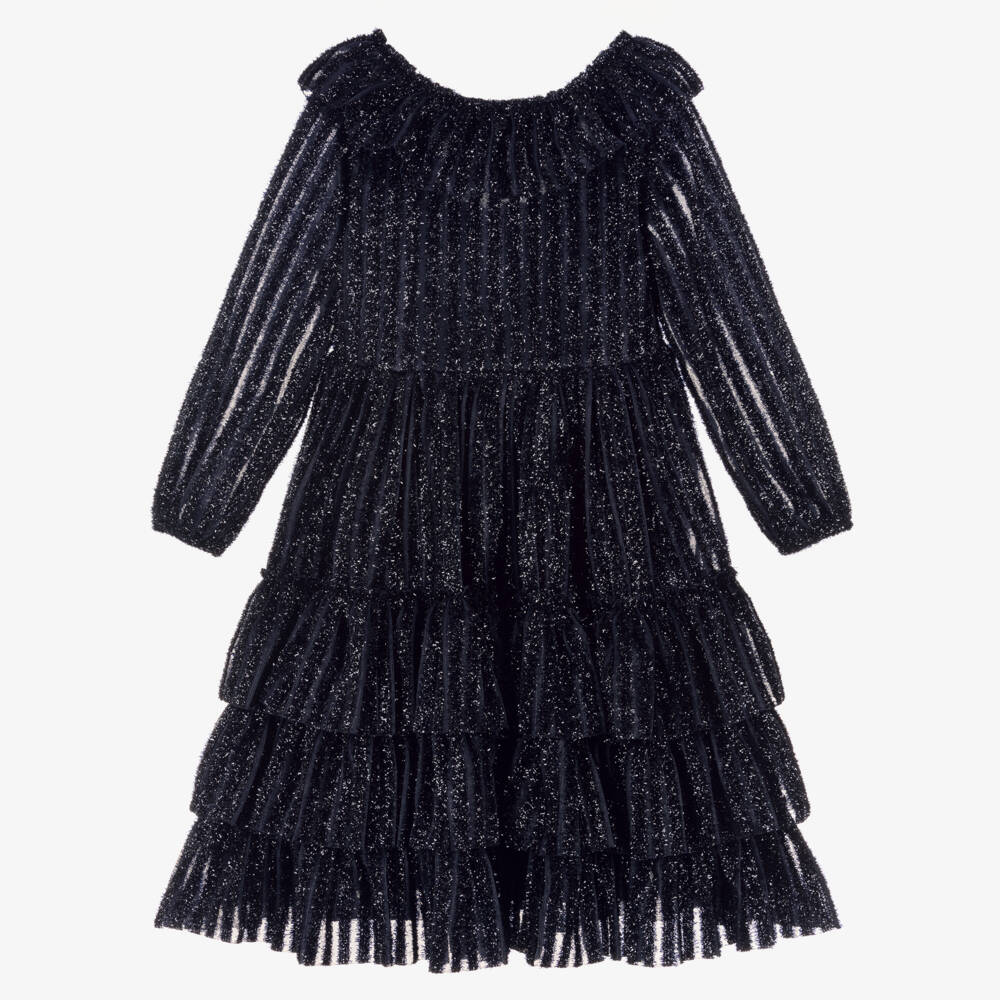 Girls Navy Blue Glitter Dress