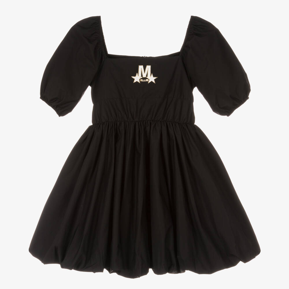 Girls Black Cotton Puffball Dress