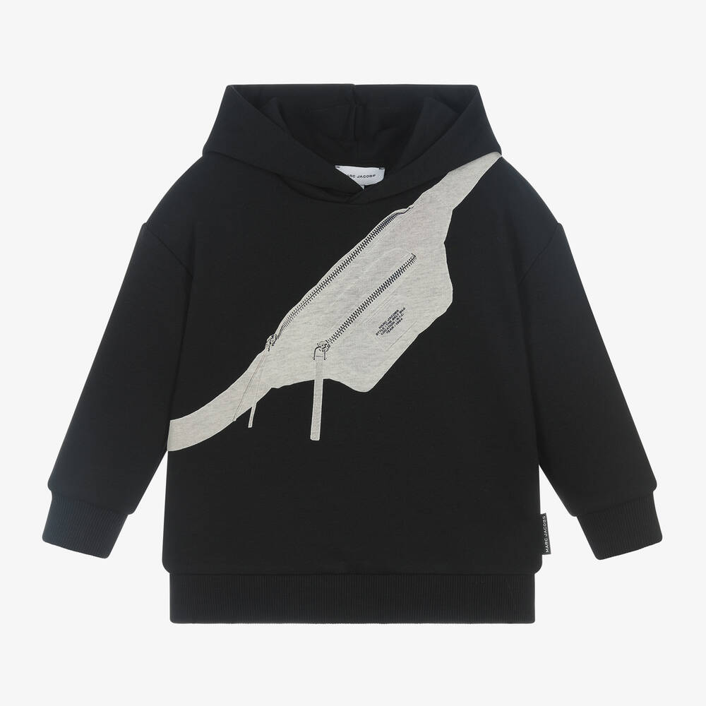 Just right for adding designer style to relaxed days, this black cotton hoodie for boys and girls is by American brand MARC JACOBS. Printed with the designer's grey marl Biker belt bag across the front, it is made in soft, comfortable jersey with cosy, ribbed trims. It has long sleeves, casual, dropped shoulders and a logo tab on one side seam.