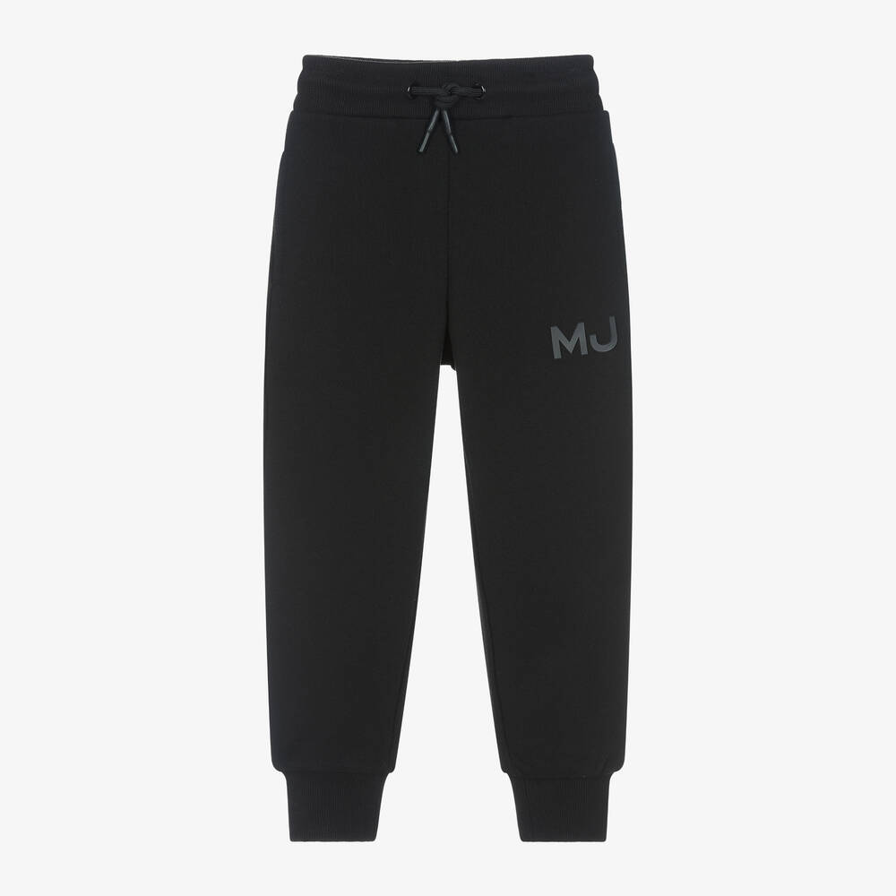 Black joggers for boys and girls by MARC JACOBS, made in mid-weight cotton jersey for comfortable wear. These cuffed joggers have an easy drawstring waist and side seam pockets to keep essentials within reach. Rubberised initials can be seen on one leg and a jumbled logo patch adds detail to the back pocket.
