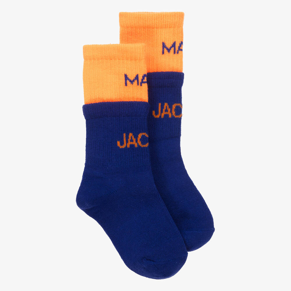 Blue and neon-orange socks for boys from MARC JACOBS, with a double-layer look. Made in a softly knitted cotton blend, they are signed with jacquard branding on the ankle for those cool designer details.