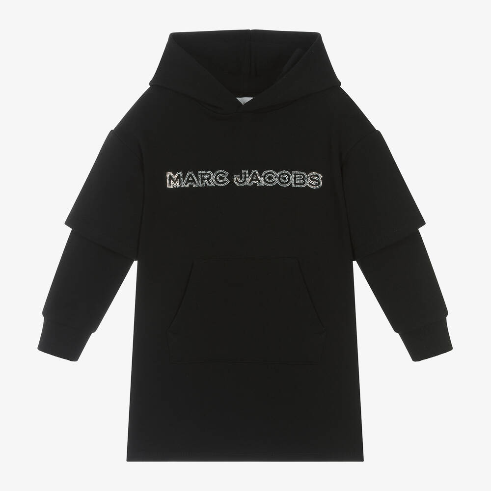 Inspired by the main collection, this black hooded sweatshirt dress for girls is by MARC JACOBS. It is made in soft, mid-weight cotton jersey with layered-effect long sleeves and ribbed cuffs for cosy wear. To elevate this casual wardrobe staple, there is a super sparkly diamanté logo across the chest. A pouch pocket on the front completes the relaxed style.