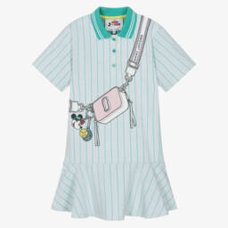 Girls navy blue dress by MARC JACOBS, featuring the brand's iconic Snapshot bag print with striking, colourful jewel embellishments. Made in a soft scuba jersey, it ensures all-day comfort. The short sleeves offer easy movement, while the straight silhouette provides a classic fit.