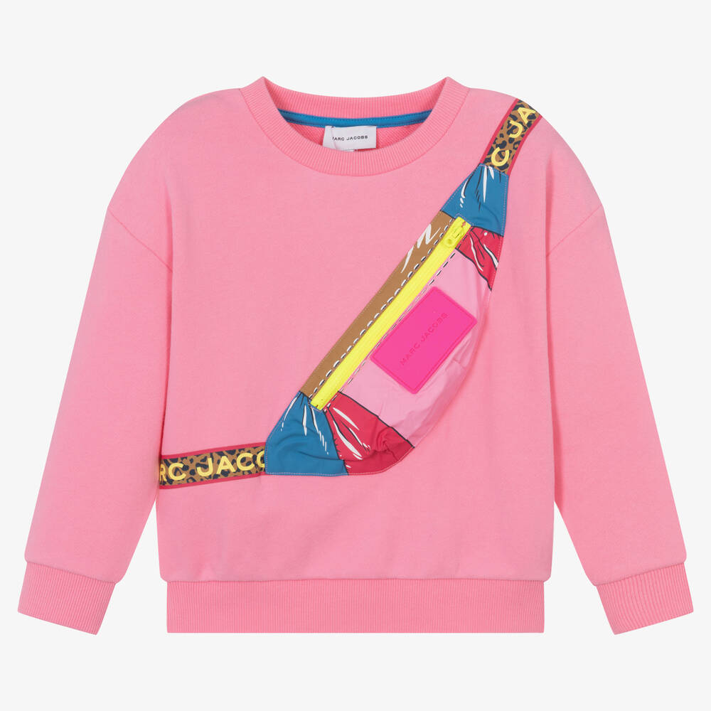 Pink sweatshirt for girls by MARC JACOBS, with a fun and colourful belt bag design on the front. The bag has a zipped pocket, ideal for carrying small essentials, with a rubberised logo badge for an added designer touch. This fun top is made in comfortable cotton jersey, with ribbed trims for a cosy feel.