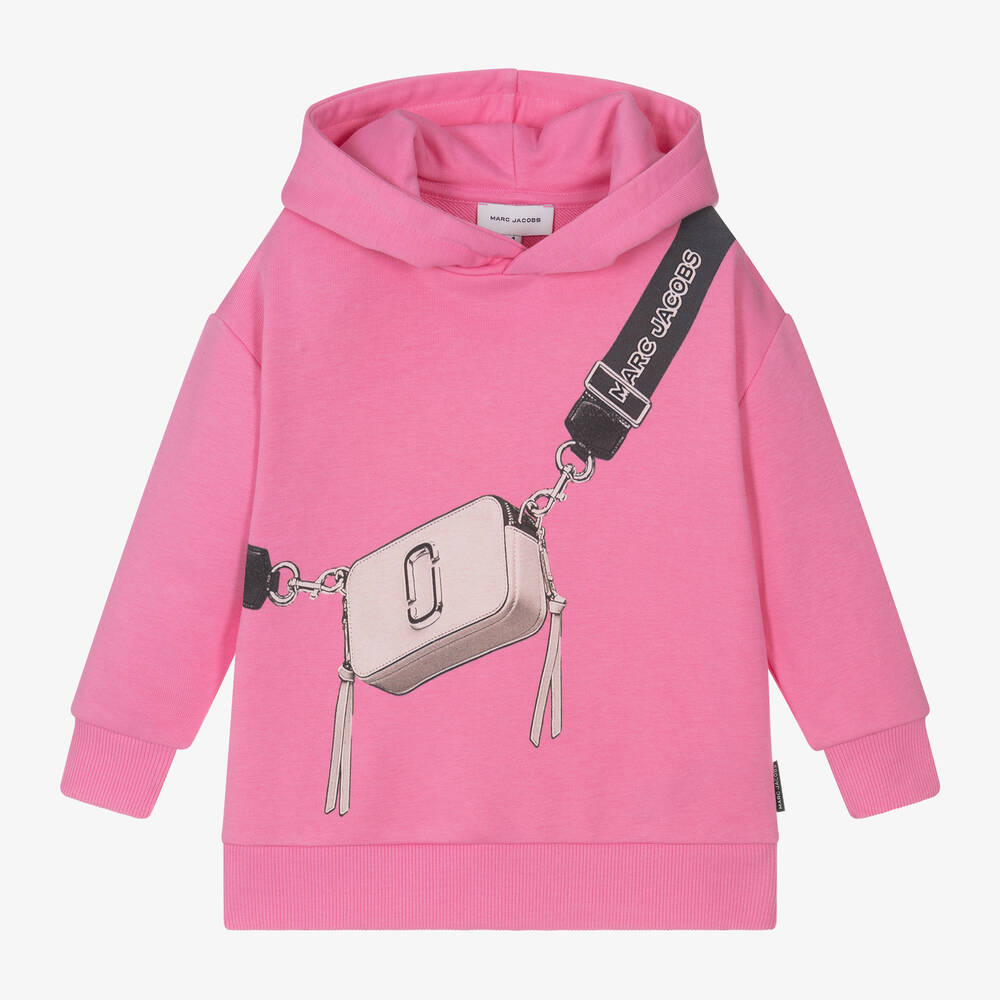 Just right for adding designer style to relaxed days, this pink cotton hoodie for girls is by American brand MARC JACOBS. Printed with the designer's grey and pink Snapshot bag across the front, it is made in soft, comfortable jersey with cosy, ribbed trims. It has long sleeves, casual, dropped shoulders and a logo tab on one side seam.