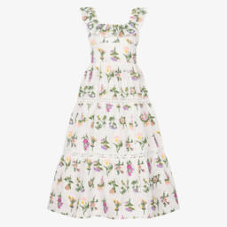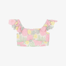 With stunning pink embroidered flowers, a white lace cropped top for girls from Marlo Kid. Fully lined for comfort, it has an elasticated neckline that sits off the shoulders for a modern look.