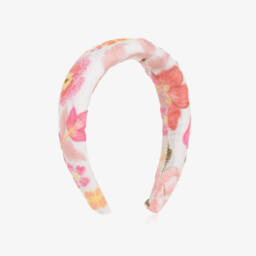 A pretty way to accessorise her outfit, this lovely white hairband for girls is by Marlo Kids. Softly padded, the broad flexible band is covered in silky satin, beautifully embroidered with a multicolour floral pattern.